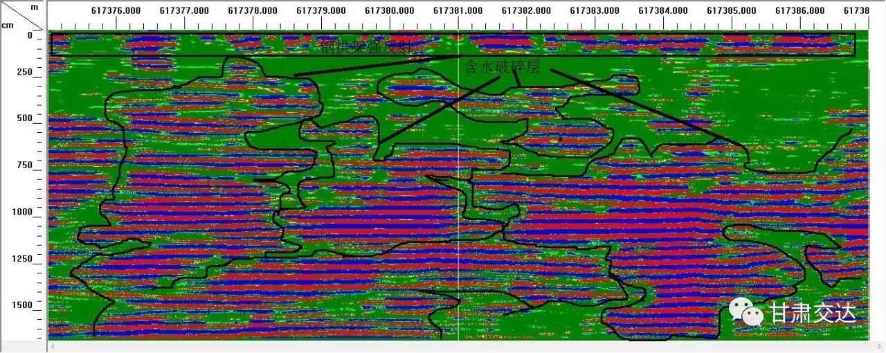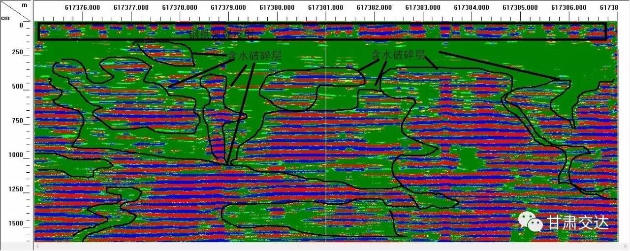 在中铁五局承建的平阳隧道进口检测中发现有含水破碎层。检测里程DK617+375-DK617+387。